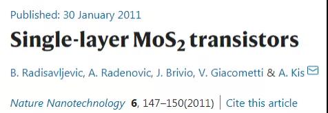 該文2011年由瑞士洛桑聯(lián)邦理工學院A. Kis教授等人發(fā)表于Nature Nanotechnology。截至2021年2月17日,該文累計被引9,140次。
