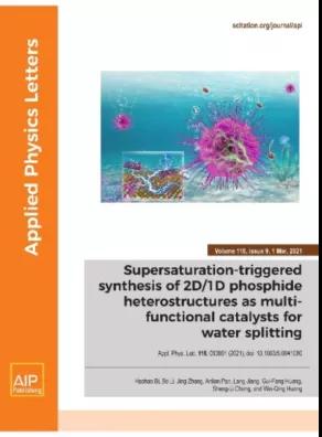 過渡金屬磷化物(TMPs)由于低廉的價(jià)格和優(yōu)異的電催化活性受到越來越多的關(guān)注,被認(rèn)為是替代貴金屬材料的理想材料。近年來,一維納米線/二維納米片復(fù)合材料的合成引起了人們的興趣,因?yàn)榛?D/1D 磷化物的異質(zhì)結(jié)構(gòu)能夠增加活性位點(diǎn)的數(shù)量和加速載流子遷移率,表現(xiàn)出比任何單一成分更顯著的性能。然而由于二維和一維納米結(jié)構(gòu)的生長機(jī)制不同,大多數(shù)二維/一維異質(zhì)結(jié)構(gòu)通常是采用多步驟方法下合成,或存在模板、封蓋劑的情況下形成。因此,在沒有模板輔助的情況下,開發(fā)一種簡(jiǎn)單和可控的合成策略來設(shè)計(jì)2D/1D異質(zhì)結(jié)構(gòu)仍然是一個(gè)挑戰(zhàn)。近日,湖南大學(xué)黃桂芳和黃維清教授(通訊作者)、碩士生畢浩浩和博士生李波(共同第一作者)提出了一種簡(jiǎn)單合成策略——基于原位過飽和觸發(fā)維度和相控生長機(jī)制——設(shè)計(jì)制備了垂直排列的2D CoFeP 納米片/1D Fe-CoP 納米線(2D/1D CoFeP NSs@Fe-CoP NWs)異質(zhì)結(jié)構(gòu)。研究人員發(fā)現(xiàn)原位制備合成的2D/1D CoFeP NSs@Fe-CoP NWs 由垂直取向的2D納米片與大量的1D納米線構(gòu)成,提供了豐富的延伸邊緣位點(diǎn)和高度暴露的活性位點(diǎn),而且良好的2D-1D界面和高度不連續(xù)空間開放式結(jié)構(gòu)能夠促進(jìn)電荷轉(zhuǎn)移和氣泡的演化。由于這些優(yōu)異的特性,該異質(zhì)結(jié)構(gòu)與FeP納米片和CoP納米線相比表現(xiàn)出顯著的HER和OER性能。此外在電池電壓為1.62 V時(shí),該催化劑實(shí)現(xiàn)全解水電流密度10 mA cm-2。該工作為設(shè)計(jì)多功能和高活性的非貴金屬催化劑提供了一種簡(jiǎn)便以及可擴(kuò)展的策略。相關(guān)結(jié)果已在知名期刊Applied Physics Letters (DOI:10.1063/5.0041080)上以封面論文發(fā)表,題為“Supersaturation-triggered synthesis of 2D/1D phosphide heterostructures as multi-functional catalysts for water splitting”