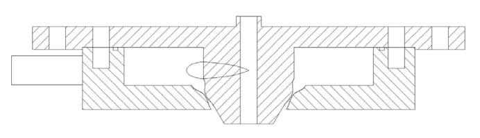 本文設(shè)計(jì)了一種結(jié)構(gòu)簡(jiǎn)單的霧化噴嘴, 噴嘴輪廓采用典型的拉瓦爾曲線, 可以在氣體壓力較低的情況下獲得超音速氣流。通過(guò)計(jì)算模擬 ,調(diào)節(jié)至最佳的結(jié)構(gòu)參數(shù), 采用有機(jī)玻璃作為主體材料, 考慮到經(jīng)濟(jì)性和加工方便, 采用環(huán)縫型的拉瓦爾噴嘴, 噴嘴的結(jié)構(gòu)如圖 1 所示。采用水代替金屬熔體, 氮?dú)庾鳛殪F化氣體, 在常溫條件下模擬真實(shí)情況下的氣霧化過(guò)程。通過(guò) Fluent 軟件的計(jì)算模擬, 可以得到最佳結(jié)構(gòu)參數(shù)下, 霧化過(guò)程中流場(chǎng)、 溫度場(chǎng)等的分布情況,如圖2 所示。通過(guò)模擬實(shí)驗(yàn)的方法, 可以驗(yàn)證模擬結(jié)果的合理性。