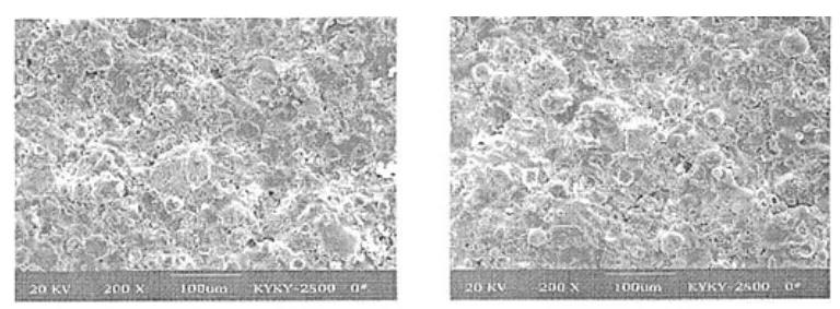 邸英浩,閻殿然等人使用聚乙烯醇作為粘結劑,采用液相噴霧造粒合成法將粒徑均在60~150nm的Al2O3和TiO2顆粒造粒成-150~+300目的微米級噴涂顆粒,經等離子噴涂后,對涂層進行檢測與分析獲知:涂層中夾雜有一定量未熔或半熔的納米顆粒;納米13AT涂層的顯微硬度比傳統(tǒng)ATl3涂層的硬度有了一定的提高,并且在相同條件下,納米13AT涂層的耐磨性也明顯好于傳統(tǒng)ATl3涂層。