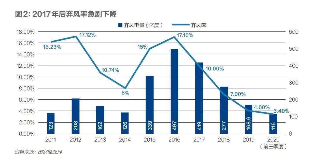 棄風(fēng)棄光一度是困擾中國(guó)新能源發(fā)展的關(guān)鍵問(wèn)題,2016年前后,部分省份棄風(fēng)率一度超過(guò)30%,2017年之后雖然迅速緩解,但在未來(lái)更高比例的新能源裝機(jī)下,消納隱憂依然揮之不去。