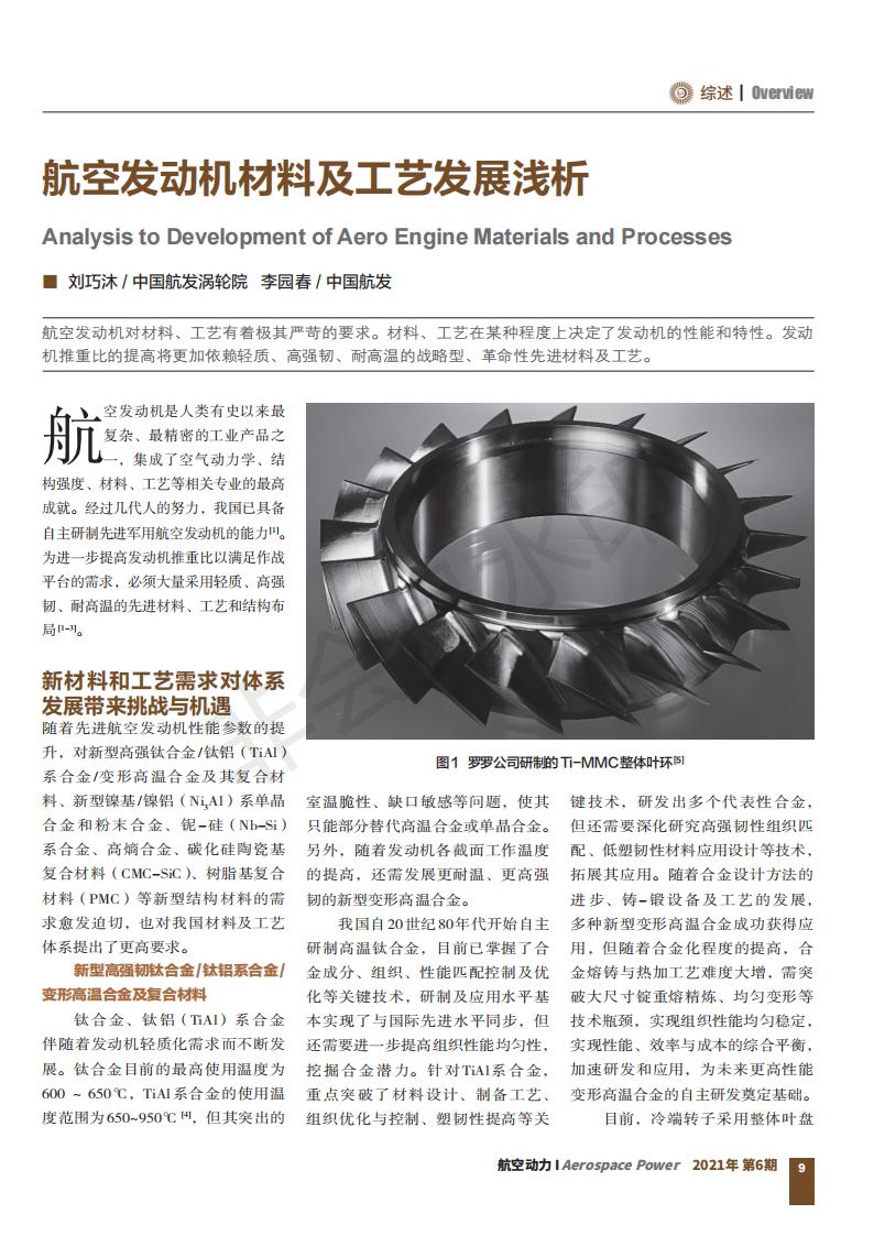 航空發(fā)動機材料及工藝發(fā)展淺析