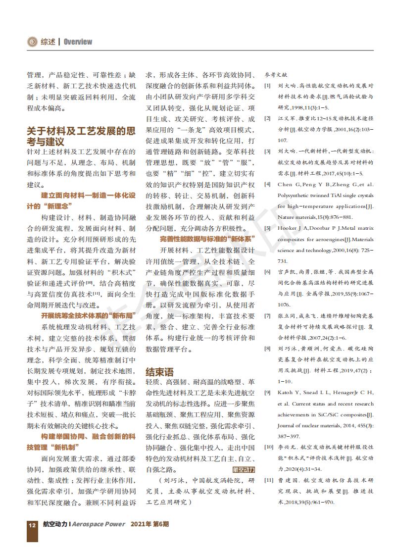 航空發(fā)動機對材料、工藝有著極其嚴(yán)苛的要求。材料、工藝在某種程度上決定了發(fā)動機的性能和特性。發(fā)動 機推重比的提高將更加依賴輕質(zhì)、高強韌、耐高溫的戰(zhàn)略型、革命性先進(jìn)材料及工藝。