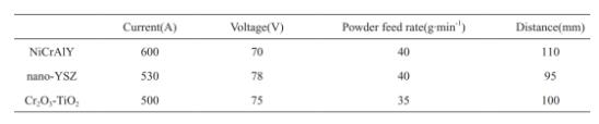 摘要:本文以?Cr2O3、?TiO2?和?NiO?為原材料,通過噴霧造粒和燒結(jié)獲得了由尖晶石結(jié)構(gòu)?NiCr2O4?和鈣鈦礦結(jié)構(gòu)TiCrO3?組成的?Cr2O3-TiO2?復(fù)合粉末。采用大氣等離子噴涂技術(shù)在鎳基高溫合金表面制備?Cr2O3-TiO2/nano-YSZ?復(fù)合涂層,分析測試了復(fù)合涂層的微觀結(jié)構(gòu)、抗拉結(jié)合強(qiáng)度、抗燒蝕性能和高溫?zé)彷椛湫阅?。結(jié)果表明,?Cr2O