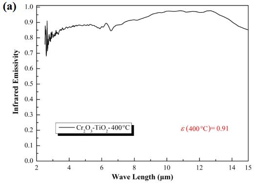 (4) Cr2O3-TiO2/nano-YSZ 復(fù)合涂層在 400 ℃和 750 ℃法向發(fā)射率(波長 2~15 μm) 分別為 0.91和 0.89。