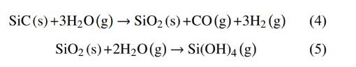 SiC/SiC 復合材料在水氧環(huán)境下,除了與氧氣發(fā)生反應外,還會與水蒸氣發(fā)生反應,其中 SiC 基體的反應通常是: