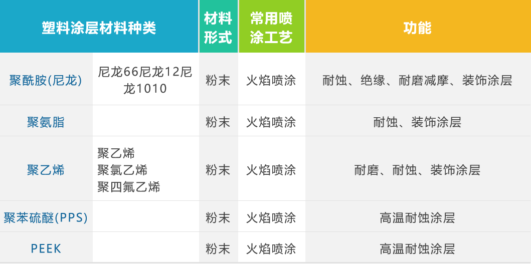 ▼常用的熱噴涂塑料