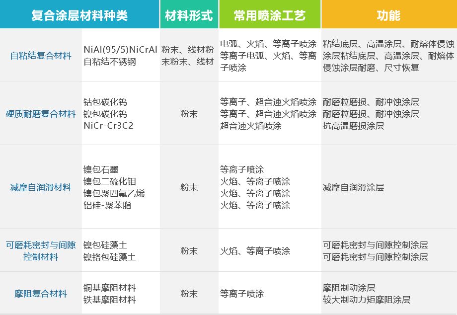 ▼常用熱噴涂用復(fù)合材料